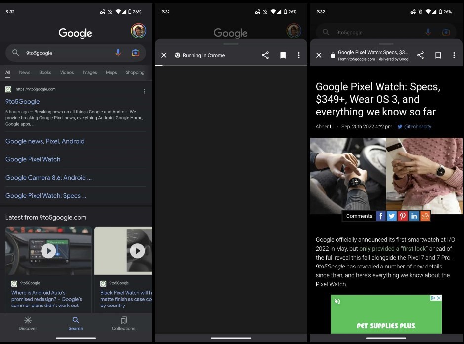 There is an interesting change being reported by a bunch of Pixel owners in Google Search and Discover apps on Android. Apparently, websites now do not open in fullscreen. Instead of going fullscreen, the app now opens recommended articles in a sheet, which you can collapse by swiping down from the top.